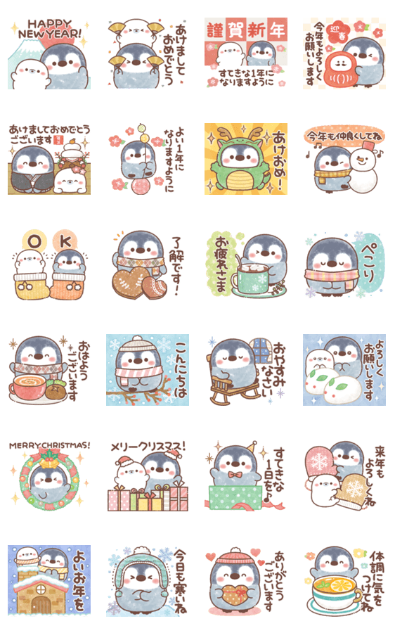 冬や年末年始に使いやすいペンちゃんのポップアップスタンプです♪(あけおめスタンプ2024対象)