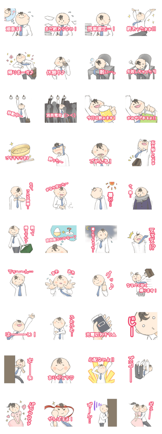 嫁ちゃんのことが好きな、サラリーマンのだんなさまのスタンプです☆彡 嫁ちゃん宛てにどうぞ♪