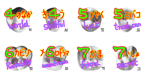 大臼歯のスタンプ 40 +英語