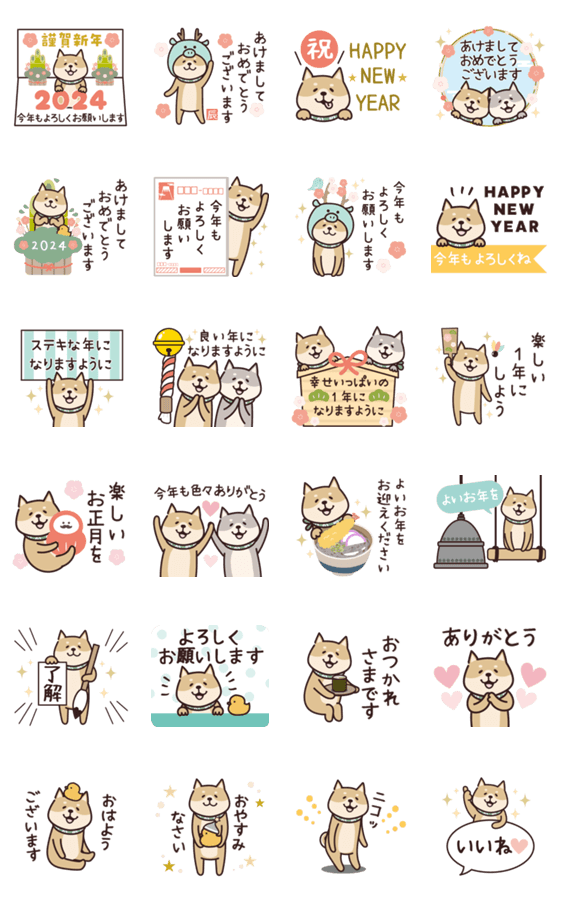しば犬さんが画面いっぱいに飛び出す♡年末・お正月に使える挨拶スタンプ