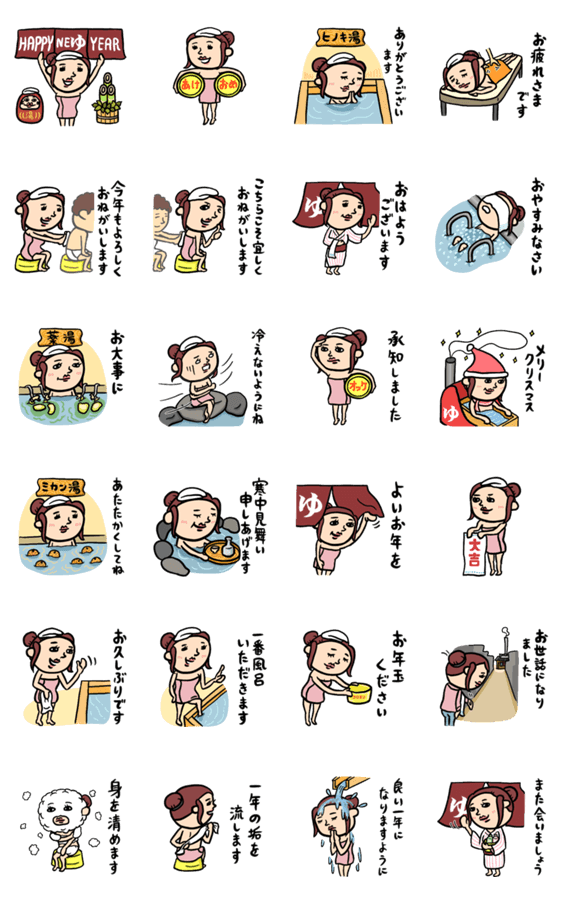 ゆく年くる年★銭湯女子 年末年始 -LINEスタンプマニア