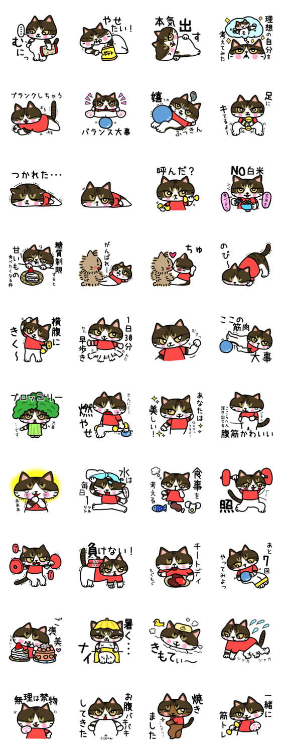 ねこちゃんと一緒に筋トレをがんばっちゃうスタンプ 。ごまちゃん仕様。修正版