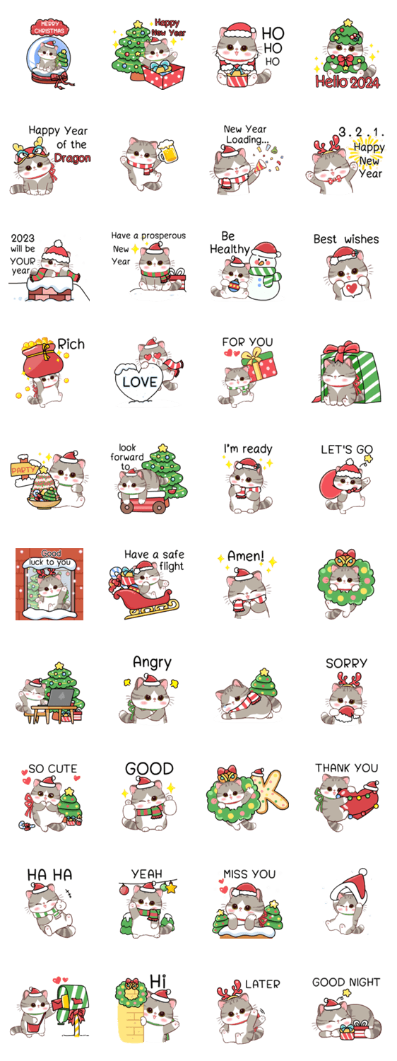 | スタンプ説明 | Meetung Cat : HappyNewYear 2024 V. ENG |