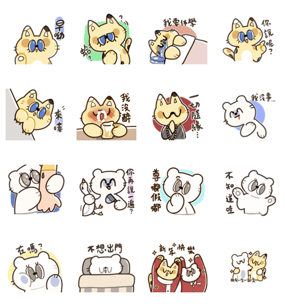 Little white bear Nathan and calico cat Yuna, Suitable for daily conversations with friends.