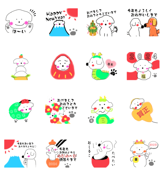 愛犬ぷくちゃんのお正月スタンプ(2024年)です。