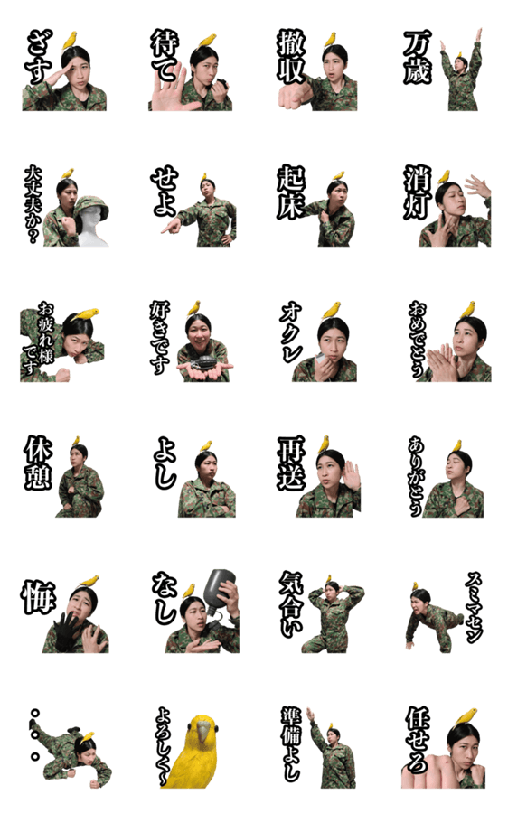 ちっぴぃちゃんズのリアルな顔と自衛隊流挨拶のスタンプです