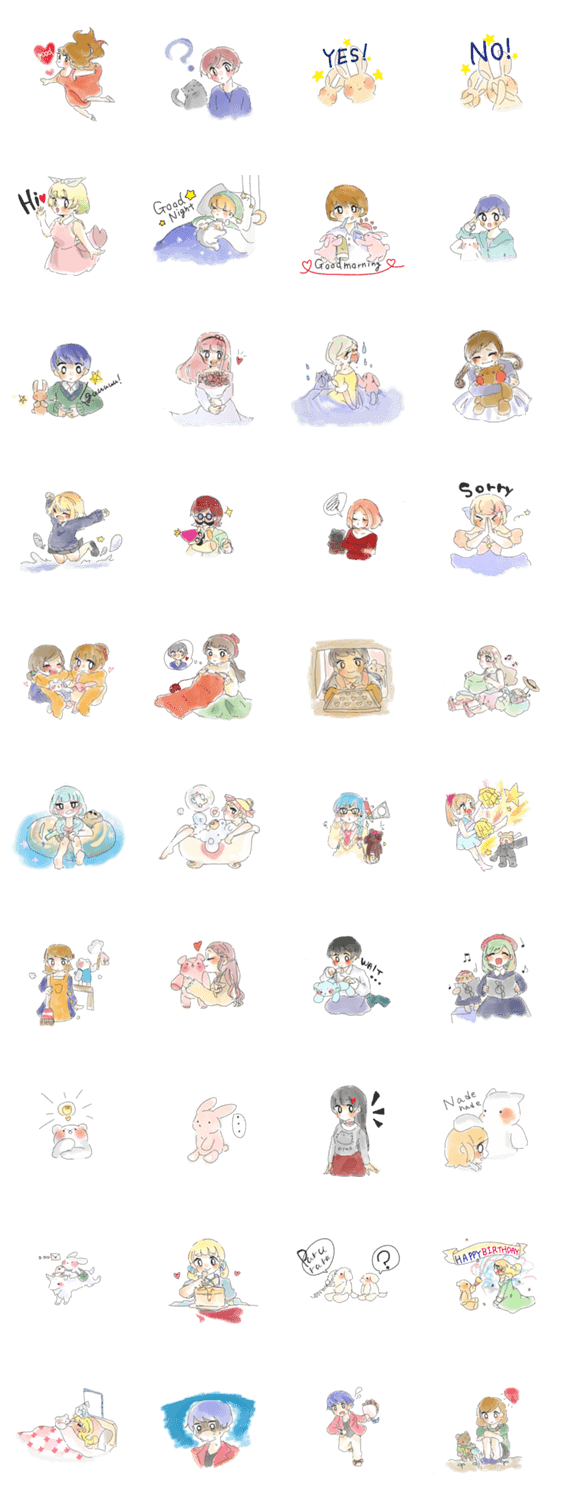 お人形と主に女の子の水彩風スタンプです♪色々な場面で使っていただけると幸いです!