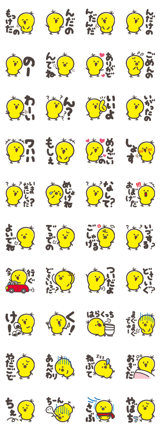 庄内地方の方言スタンプ。スタンプだけで返事できるものや、普段の会話でよく使う言葉を集めました。#方言#庄内#酒田#ひよこ