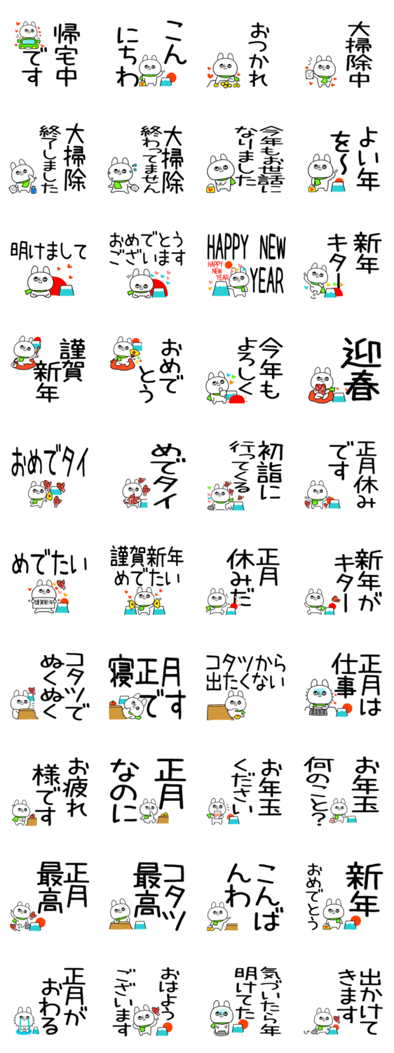 しろくてまるいキャラのおけおめスタンプです☆正月スタンプ☆もるきゅた作