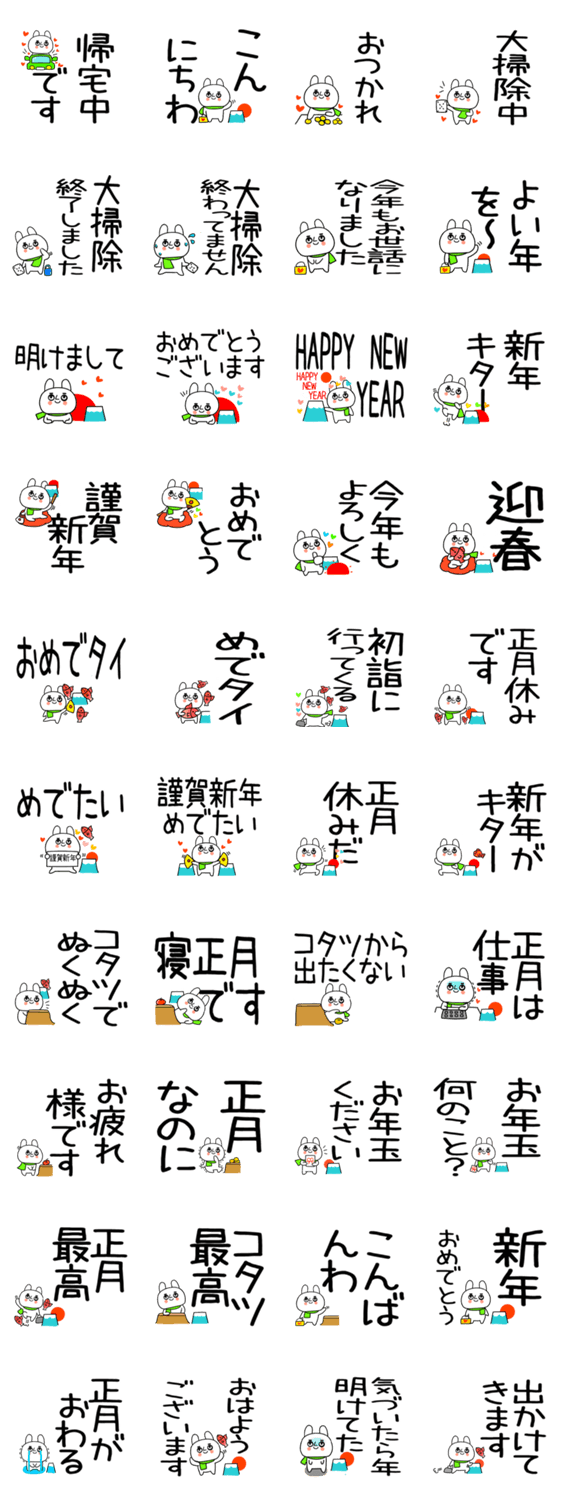 しろくてまるいキャラのおけおめスタンプです☆正月スタンプ☆もるきゅた作