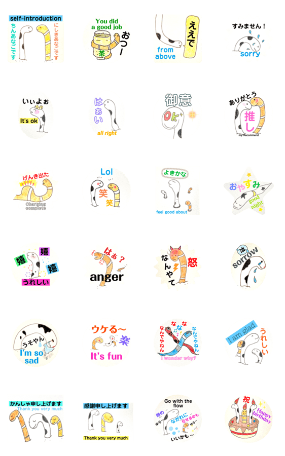 | スタンプ説明 | 沖縄で出会ったチンアナゴとニシキアナゴをスタンプしました。つぶやきに笑っちゃお |