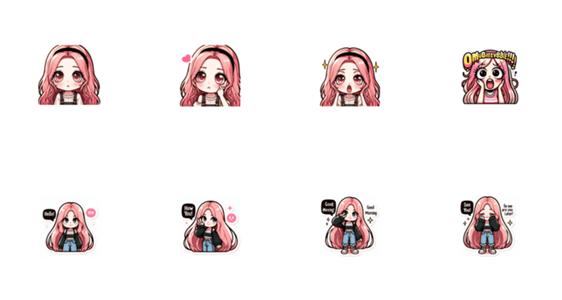 ピンクロングヘア女の子喜怒哀楽2 -LINEスタンプマニア