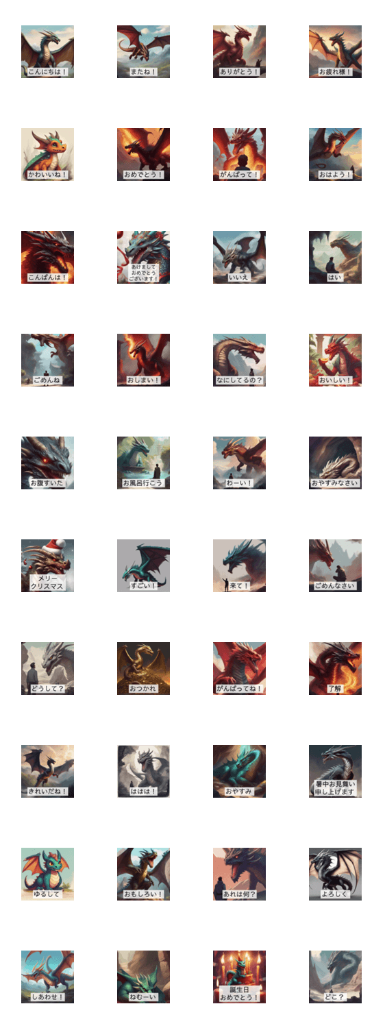 感情を込めて送る「ドラゴン言葉」スタンプで、コミュニケーションがもっと楽しく!気軽に使える40以上のスタンプで、日常がドラゴンワールドに変わる!