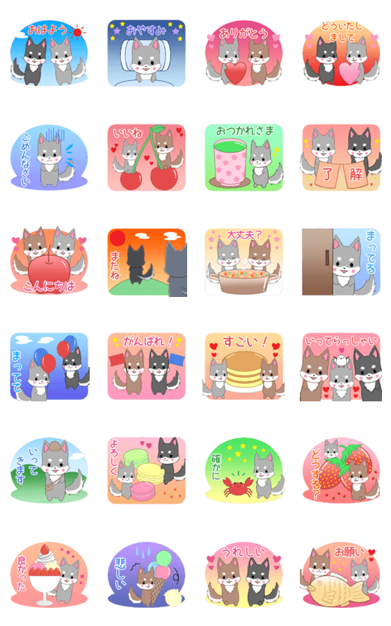 小さいハスキーたちのポップアップスタンプ第2弾。シルバー/ブラック/レッド/チョコ/カワイイ/可愛い/キュート/犬/イヌ/もふもふ/モフモフ/挨拶/日常会話