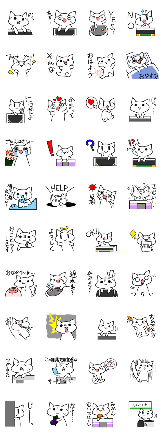 特急列車名を擬猫化した、通称"特急猫"のスタンプです。