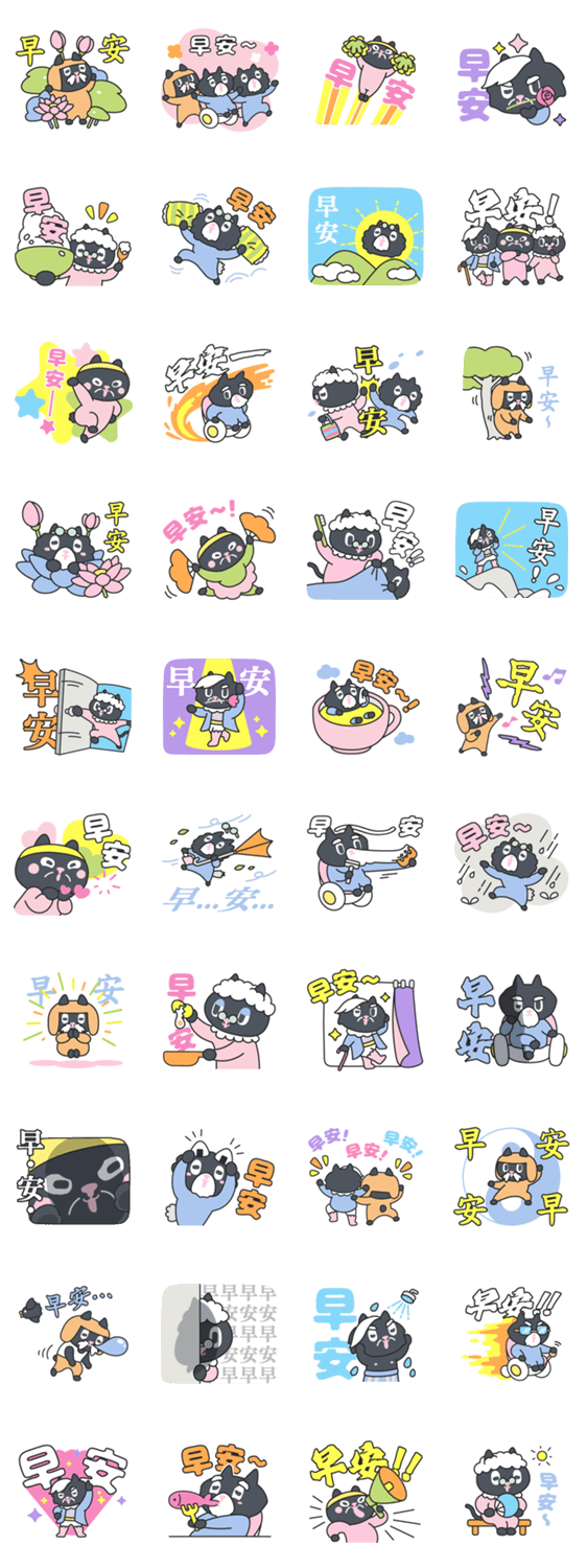 | スタンプ説明 | 40 sets of cute and fun morning greeting stickers, no more worries about saying good morning to family and friends! |