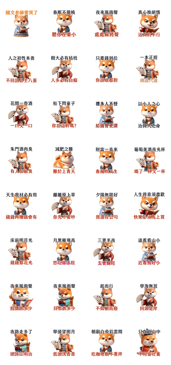 3Dcute shiba dog - funny talk poem2 -LINEスタンプマニア