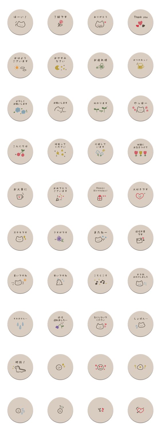 控えめでかわいい、1つあると便利なステッカー風スタンプです。韓国っぽい/おしゃれ/大人女子/大人可愛い/シンプル/毎日使える/日常会話/あいさつ/あざとい