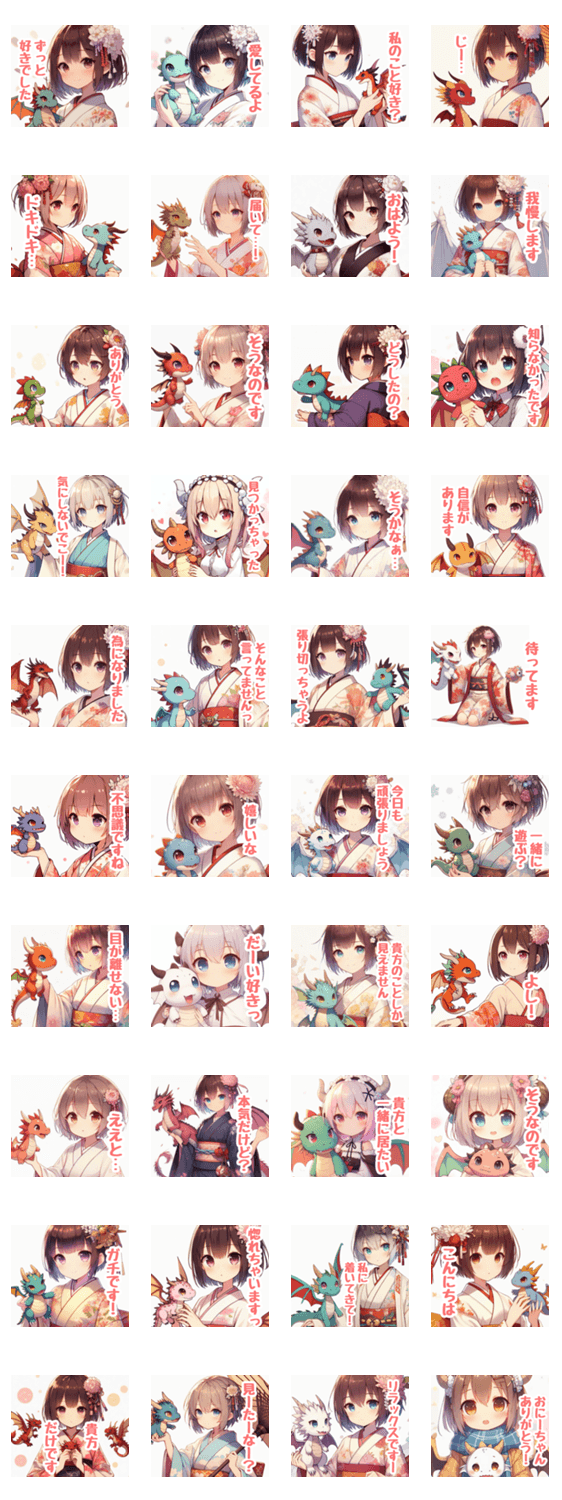小さなドラゴンと女の子スタンプ -LINEスタンプマニア
