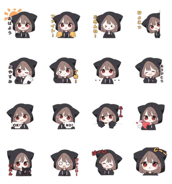 黒猫パーカーちゃんスタンプ -LINEスタンプマニア