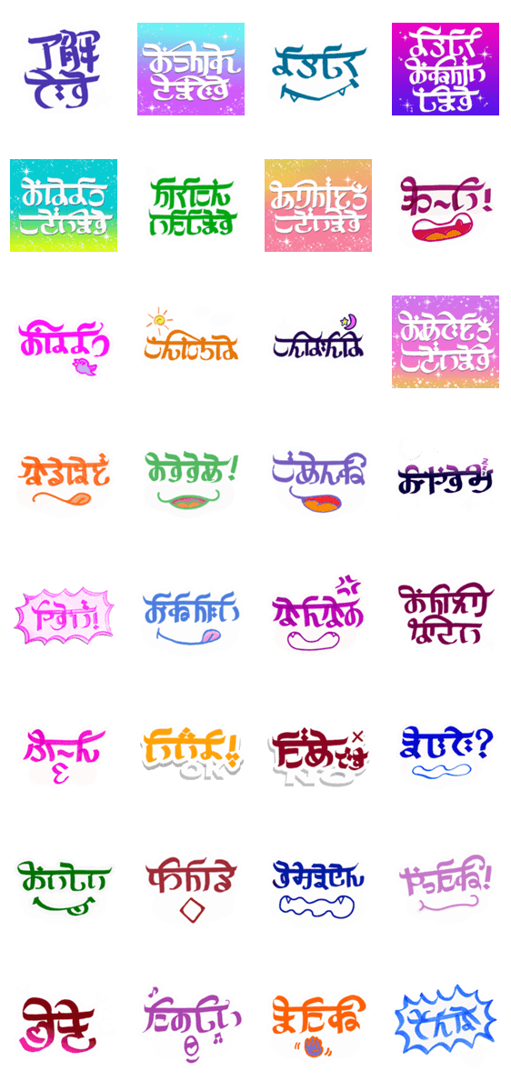 デーヴァナーガリー文字っぽいヒンディー語風?!アラビア文字っぽさも…しかし何のことはない日本語のアンビカ文字がスタンプに!でか文字でビジネス向けの敬語もあるよ!