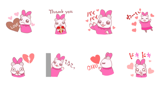かわいいハムスター、しらゆきちゃんの、バレンタインスタンプです。