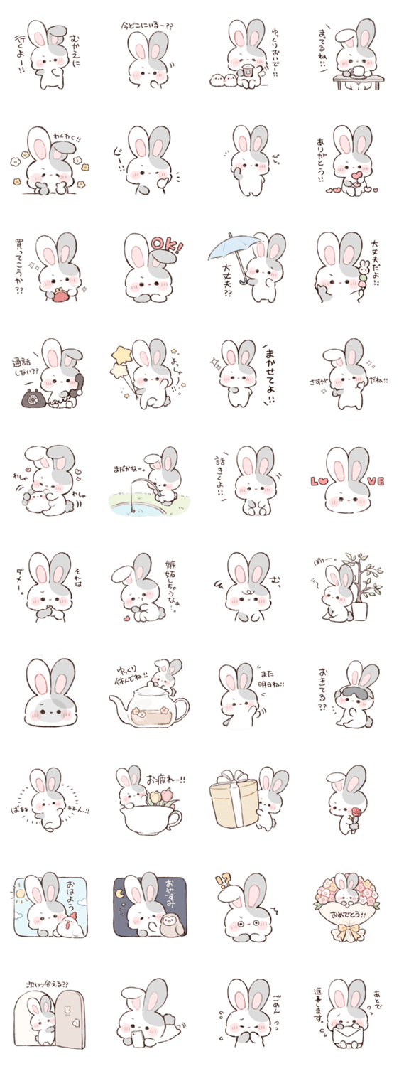 きりっとしたうさぎちゃんのスタンプです。 かわいいだけでは物足りない方におすすめです。