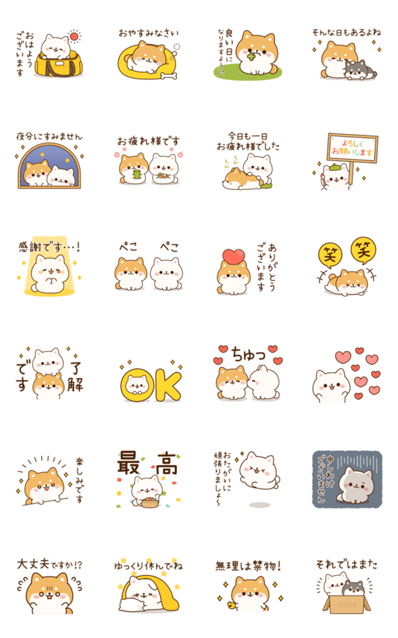 敬語も多めで使いやすい♡可愛い柴犬たちの相手を気づかう言葉が入ったスタンプです!(赤柴・白柴・黒豆柴)※ポップアップスタンプをリメイクしたものです