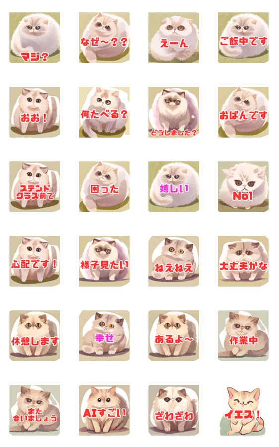 白ネコのあいうえお・・・ってるスタンプ