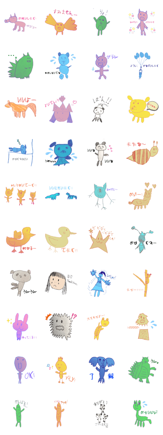 ふうちゃんが描いた絵のスタンプ第3弾。