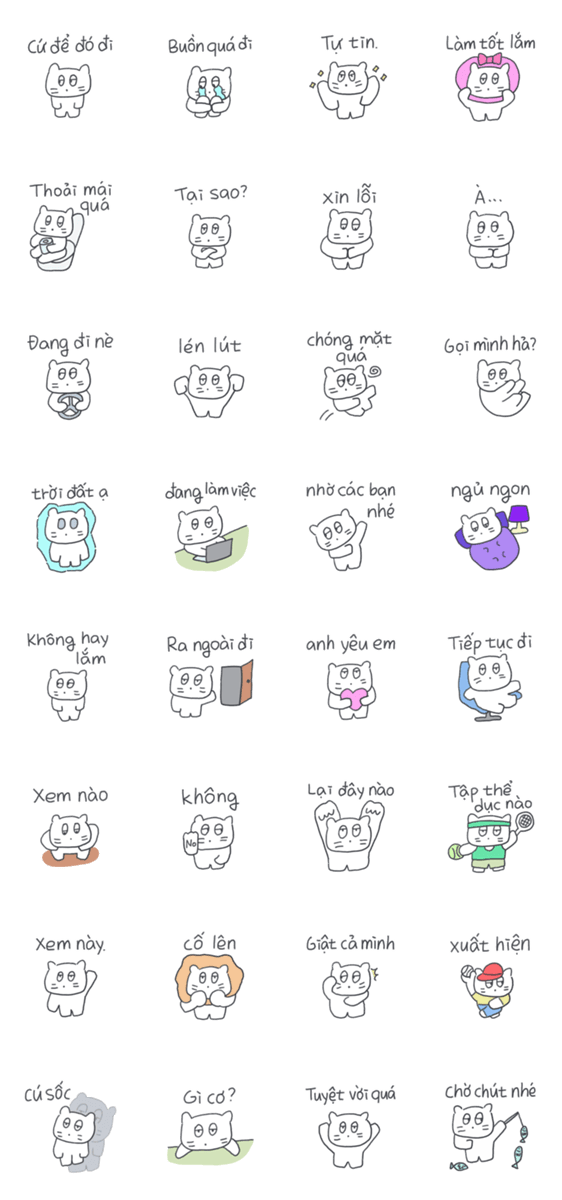白ネコのあいうえお・・・ってるスタンプ