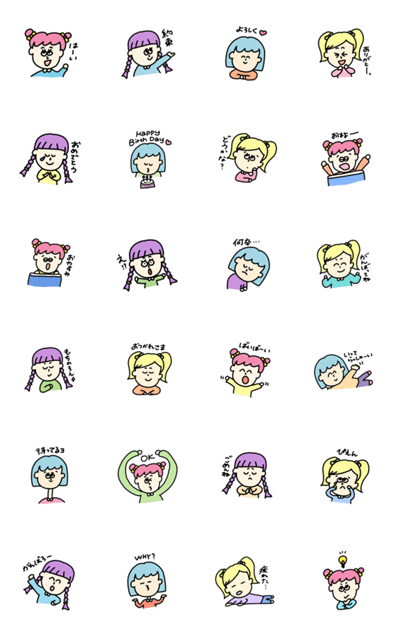 ラフに使える女の子のスタンプ( ◠‿◠ )