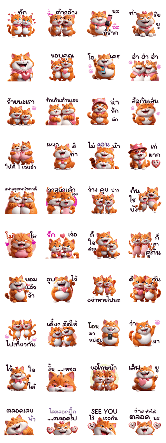 Chubby cat couple in love, "Cute sticker of two chubby cat, suitable for Valentine's Day"