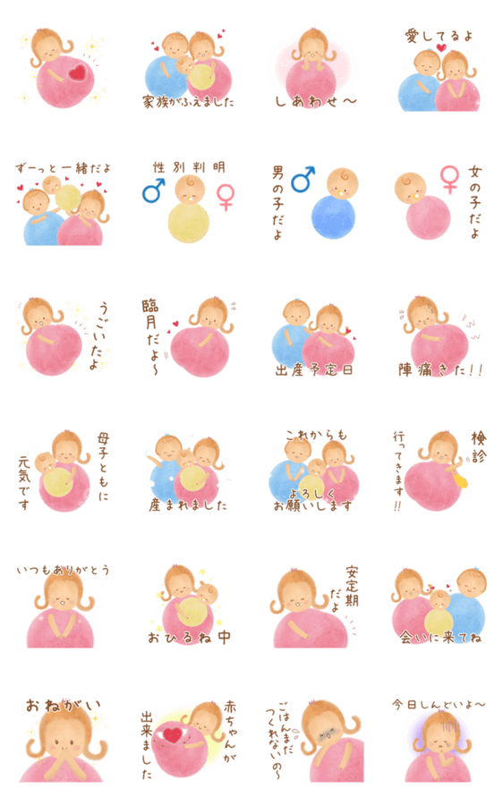 | スタンプ説明 | マタニティママ&出産に使えるママの気持ちが、ほのぼのとするスタンプです。ママの一生の内の大切なマタニティライフをこのスタンプを使って思いっきり楽しんでね~ |