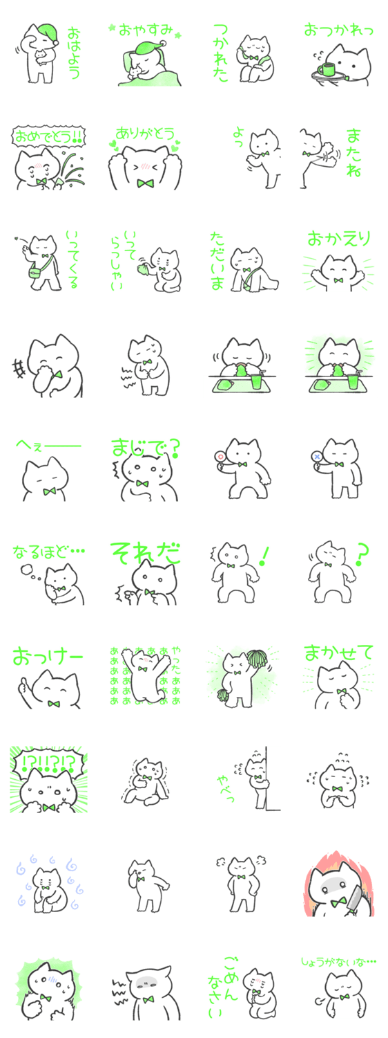推し活ねこ。緑推しさんの為のスタンプ シンプル/日常/毎日使いやすい/挨拶/緑/グリーン/推しカラー/推し色/メンバーカラー/オタク/オタ活/推し活/アイドル/沼