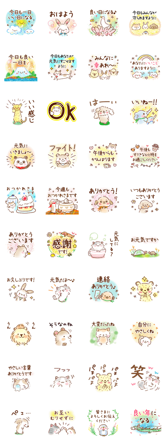 相手にやさしく温かい言葉を届ける、動物たちのスタンプセットです。 ~思いやり・あいさつ・丁寧・敬語~