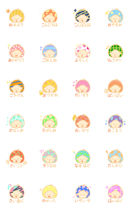 カラフルなマッシュルームヘアーのこ の動くスタンプです。文字に合わせてぱくぱくと口が動きます。たくさん使ってもらえますように #カラフル #おはなし