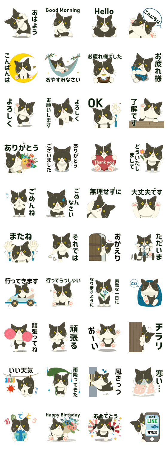 毎日よく使う便利なスタンプです (年中使える/ハチワレ/猫/大人/かわいい/おめでとう/誕生日/PTA/友達/ママ友/ずっと使える/ありがとう/敬語/丁寧/見やすい/あいさつ/家族