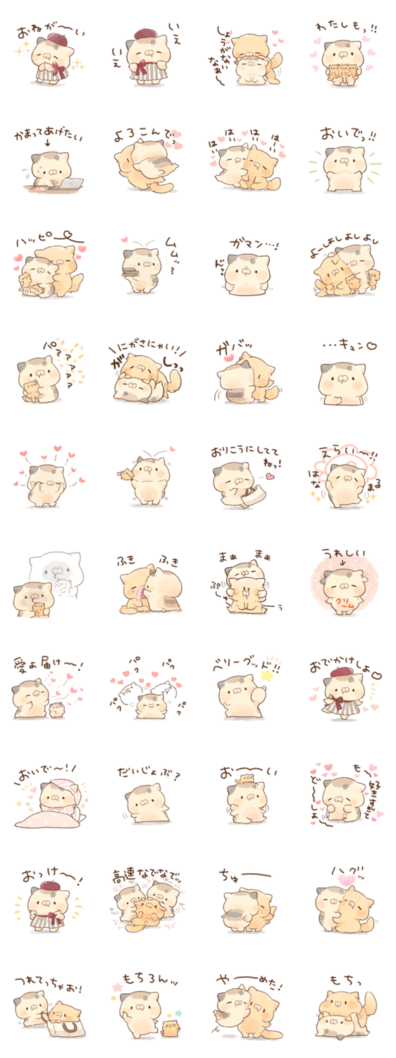 となりのにゃんこ、ミケとクリームのペアスタンプです。甘やかしたい時に使ってね。甘えたい♡クリームとペアで使ってくれたら嬉しいです。 ミケクリ/恋人/家族/カップル/