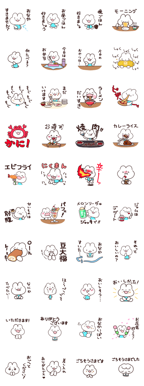 食べることが大好きなはらぺこのうさぎのスタンプです。