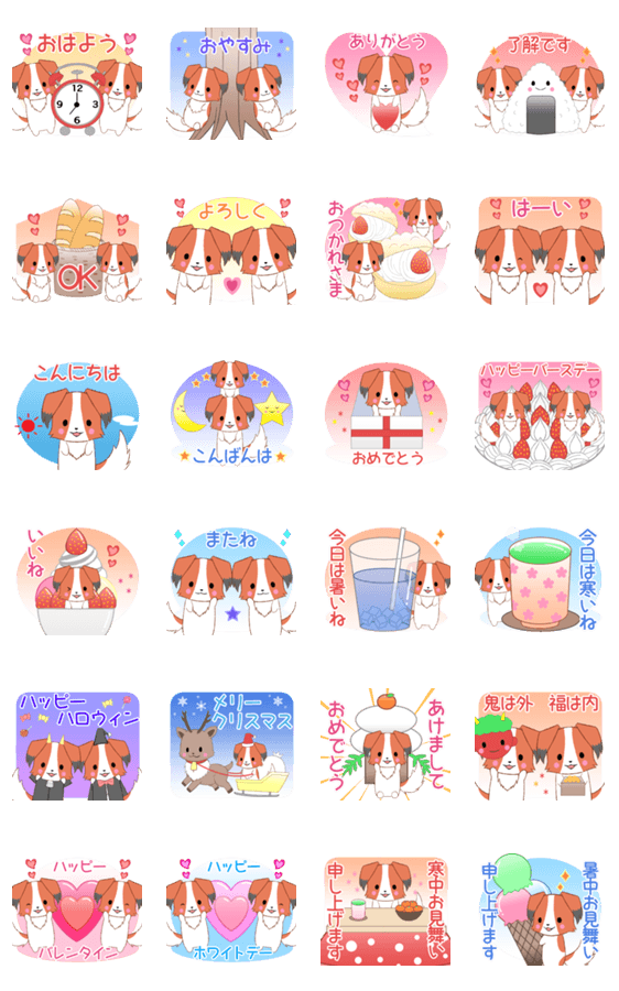 小さいコーイケルホンディエたちのスタンプ第1弾。カワイイ/可愛い/キュート/犬/イヌ/もふもふ/モフモフ/挨拶/日常会話/春/夏/秋/冬