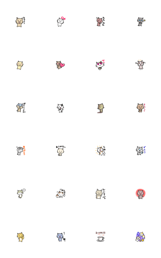 ちびネコたちの、小さいスタンプです。