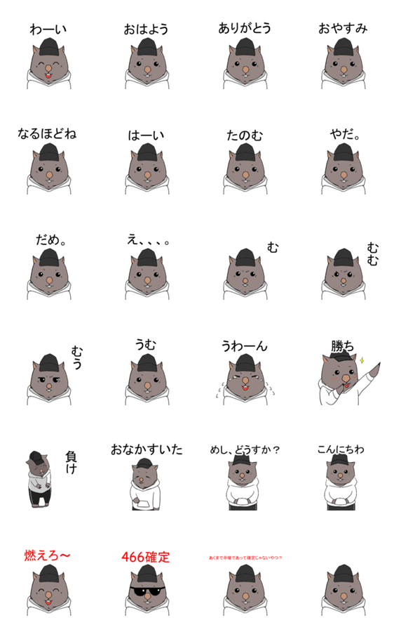ウォンバットのようなキャラクター、ウォンくんのスタンプです。