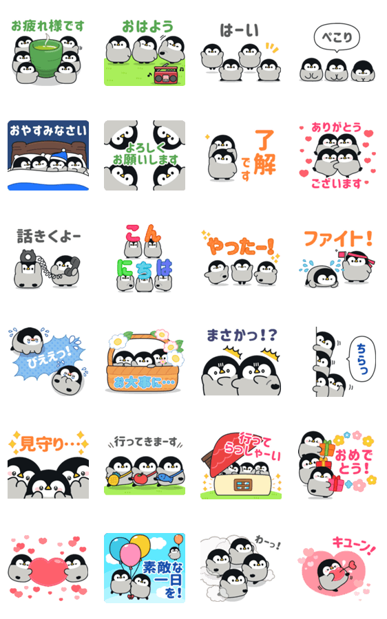 いつもより多めにいるかも?日常会話に特化した、ペンギンの赤ちゃんの便利で使いやすいポップアップスタンプです♪