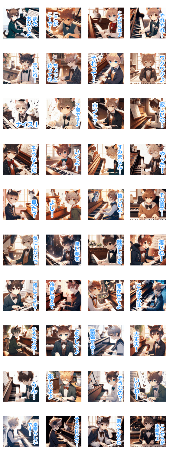 ピアノを弾く猫耳男子スタンプ -LINEスタンプマニア