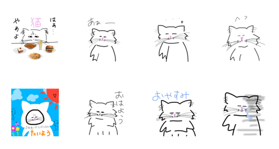 白ネコのあいうえお・・・ってるスタンプ