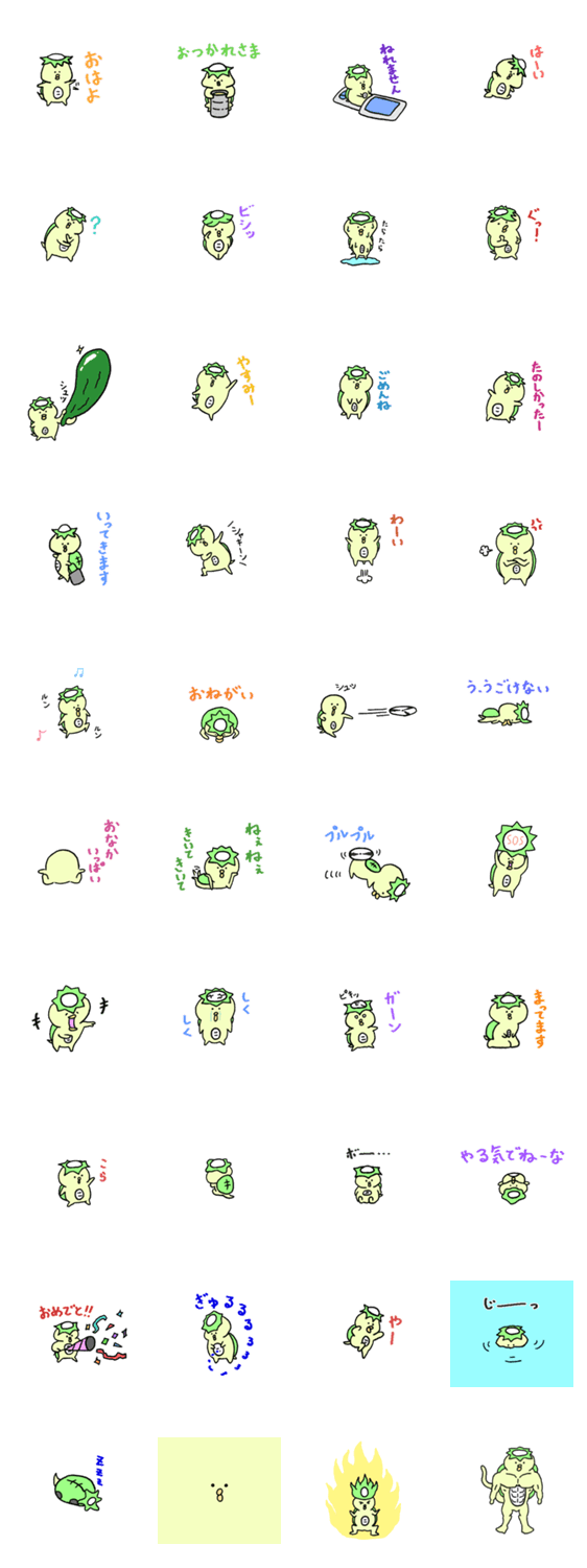 かわいい河童のスタンプです。 恐竜の要素は.....尻尾だけです...