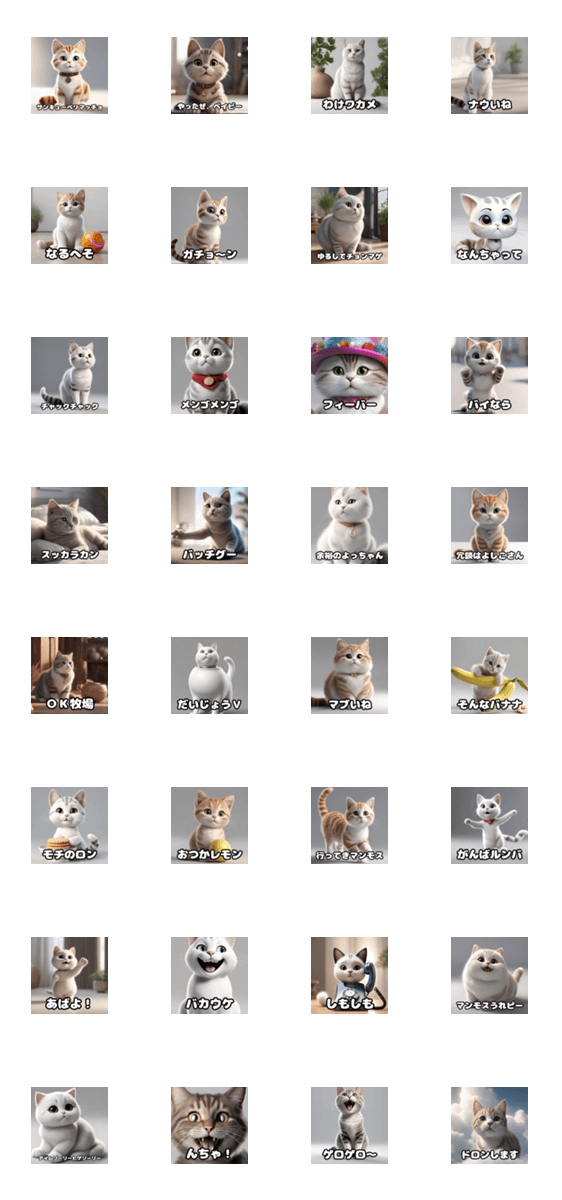 白ネコのあいうえお・・・ってるスタンプ