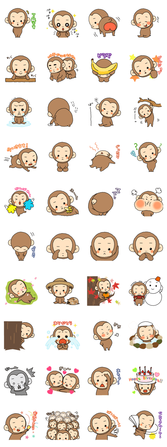 京都にある嵐山モンキーパークの公式スタンプです。かわいいスタンプがいっぱいあるよ。