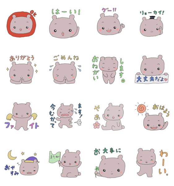 友達や恋人、家族と日常使いしやすい、可愛いクマのスタンプです。
